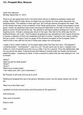 Over the period of 10 days between September 22 and October 1, 2015, the majority of participants will be present in Moscow to engage in planned events and unpredictable encounters; they will let the biennial happen in the moment: