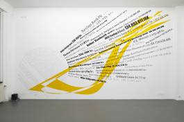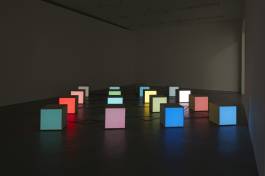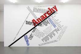 Bulloch adopts an interdisciplinary approach, incorporating references from a wide array of sources, be it history, film or music. In her wall paintings, specific references to artistic, political or social groups are deconstructed and graphically assembled. Through this process of détournement, the artist questions the informational status of an artwork, as well as the possibility of narrating history. Bulloch’s drawing machines are interactive pieces, triggered or altered by the engagement of visitors. In this way, her drawing machines explore the dialectic between technology and labor, making us conscious of our place, and that of others, within the gallery space. With her Pixel works, Bulloch ‘programs’ our experience of art by encoding specific references in the technical programming of her modular light and sound installations. Though the complexity of the workings behind these installations is invisible, a predefined experience of the work is imposed upon the viewer.