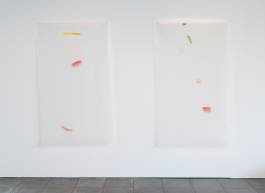 Together, they allow a study of Mees’ practice and his ideas of mutability, fragility, porosity and the shattering of pictorial space in ordinary space. The title of the exhibition (borrowed from a note by the artist on a work on paper) characterizes the atmospheric impermanence in Mees’ work, and his relativist poetic approach.