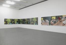 Instead of adopting the format of a chronological display, each institution will take a constellation of key works as a point of departure. Designed as a trilogy, the three institutions each present a unique exhibition thematically linked to a public program. At the Kunstverein für die Rheinlande und Westfalen, Düsseldorf, the twelve-part panorama Lookout (1979) will offer a focus for considerations of the construction of imagery. And in Kunsthalle Zürich, Attack on Literature (1975) will focus the inquiry on questioning poetics and the tensions between image and text.