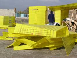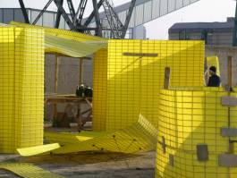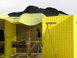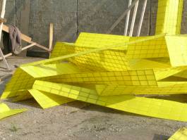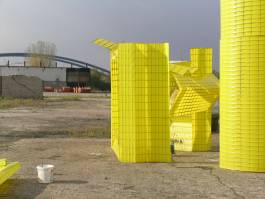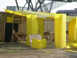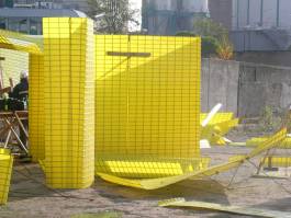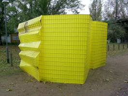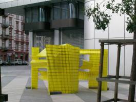 This first monographic book discusses issues of art in public space and the social-political implications of Beutler’s work.Pecafil is named after the bright yellow, biodegradable building material which Michael Beutler used for a series of outdoor sculptures in the city of Frankfurt am Main. The works of the exhibition “nicht innen sondern außen – nicht drinnen sondern draußen” can be seen in the city of Frankfurt between November 2004 and January 2005.