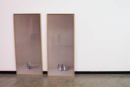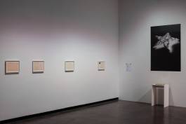 Various performative elements also define the exhibition, such as Jason Dodge’s sculpture Rose light to white light to rose light over and over by hand. On different days throughout the duration of the exhibition, the neon tubes installed in the space are replaced with rose-colored tubes, only to have these replaced, in turn, with the original ones. The work exposes how a mere change of lighting conditions changes what we see. Fernando Ortega’s work, Transcription, also involves a periodic shift in perception. Ortega had the buzzing sound of a mosquito translated into a musical composition. The piece will be performed by a violinist on random days during the exhibition without providing advance notice of the recitals.