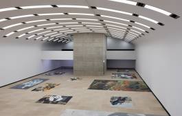 There Is No Place Before Arrival focuses on issues arising from a particular “method”. This method not only determines the way Nicolai conceives and realizes his work, but also becomes a type of work itself. At Kunsthalle Wien Olaf Nicolai has commissioned several street and theatre painters to paint onto the floor a pool of twenty-two images of different kinds selected from his personal archive of newspaper clippings. The entire space is left empty without any artificial architectural intervention, presenting a gigantic “carpet” of images on which the visitors are able to walk over and around. The constellation of captivating and evocative images with both political and poetic connotations composes a tableau made of diverse sizes and scales. The audience is confronted with something that appears familiar yet it’s not exactly clear what it is. The conceptual gesture of translating photographs from public media sources into enlarged floor paintings is a way to incorporate these particular images into a different context, which affects the perception of them and thus their reception. Over the course of the exhibition, the installation will not only gradually change and slowly vanish, but it will also be activated by writers, dancers, choreographers, musicians, artists and performers invited to respond to this painted plateau and its individual images.