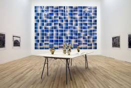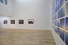 Fettgerüst (2014-15) features 169 colour photographs installed in a grid that occupies an entire double-height wall of the gallery. Each image depicts a Fogo Island sunset, creating a monumental wall of fragments of the sky, yet none serve to capture the immensity and experience of the real natural phenomenon. Devoid of a frame of reference or identifying context, Fettgerüst offers a structured gaze over an infinitely repeating experience.