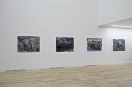 Just as any photograph is an intentional framing of one view over another, allowing the photographer to construct a form of reality, so too its interpretation is influenced by the viewer’s subjective experience and knowledge. Rough Form (2014) is a series of 32 photographic collages depicting rock formations on Fogo Island, eight of which are presented in the exhibition. Each collage superimposes a black and white print onto an inverted colour print of the same image. The resulting composite images are bereft of scale, and evoke a desire to see within each rock formation some recognizable form or pattern, to impose a human reading upon the natural world.