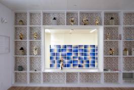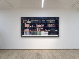 The large-scale colour photograph A Scene in a Library (2014) depicts a bookshelf replete with bound manuscripts, stacked papers, artefacts and mementoes. Yet what appears as a deeply personal collection is in fact a staged, artificial arrangement: a composite image sewn together from multiple analogue and digital sources. Objects within the image offer clues to be deciphered, such as references to the birth of photography and the nature of seeing, raising questions on perception as a cognitive act.